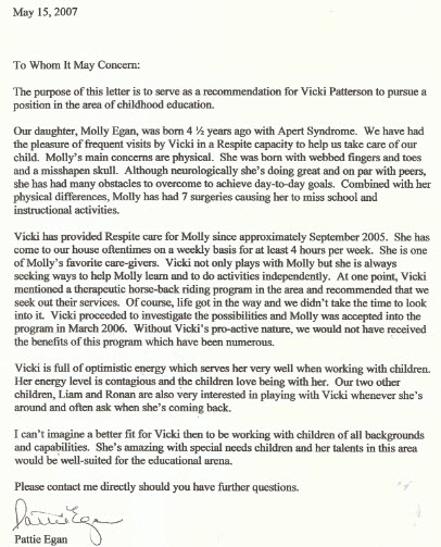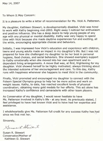 Working with the following individuals with Down Syndrome, Autism, Asberger's, Cerebral Palsy, Prader Willie, Apert's, Quadriplegia, and those developmentally delayed people, has given me a broad spectrum of opportunities for positive growth. In addition, the Mental Health issues I have worked with include bipolar, ADHD, OCD, anxiety, depression, addiction, self image, and self esteem issues.